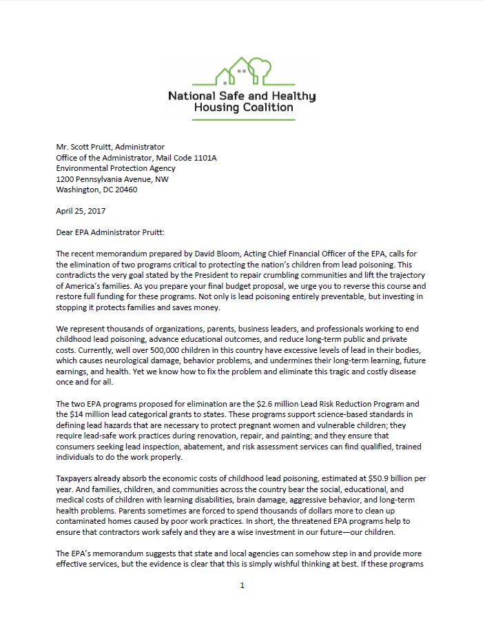 National Safe and Healthy Housing Coalition Initial Members